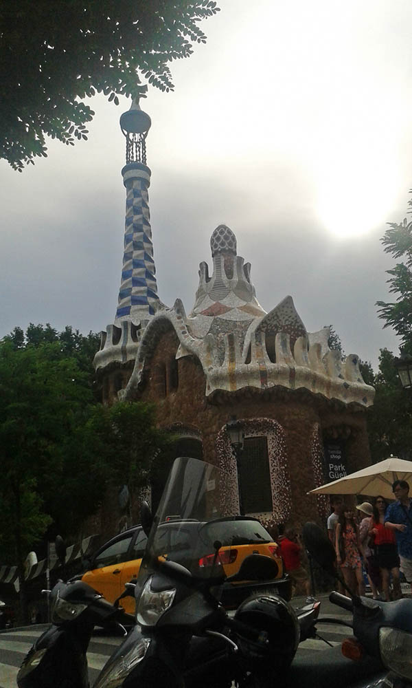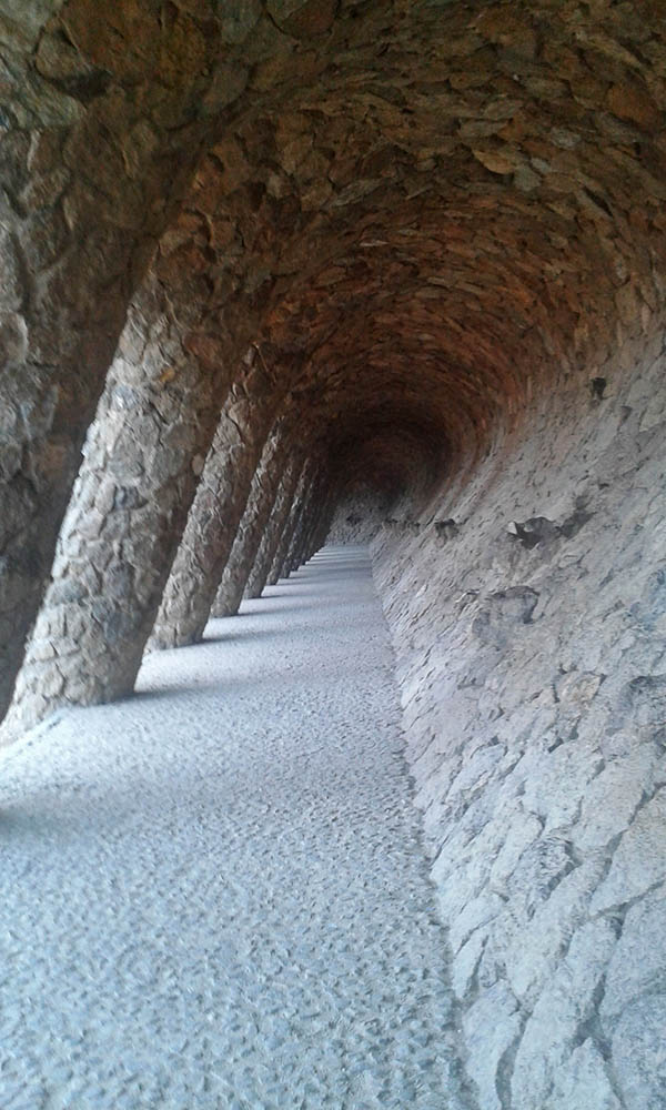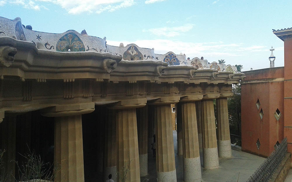 Das nächste bekannte Gesamtkunstwerk von Gaudí ist der Park Güell, in dem er auch sein Häuschen bewohnte. Der Park war für ihn ein Experimentierfeld vor der Haustür, sodass er seine Ideen jederzeit ausprobieren konnte. Außerdem hat man im ersten Stock von der Galerie aus einen direkten Blick auf die Sagrada Familia, so konnte Antoni Gaudí jederzeit den Bau seines Meisterwerks beobachten.